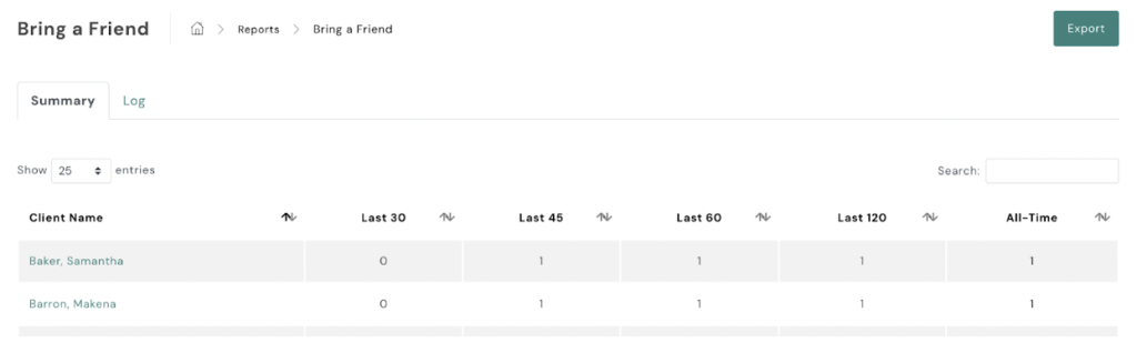 Here, you can view detailed data on Bring-a-Friend visits, including participation metrics and visit history.