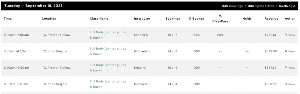 Here, you’ll be able to view your class schedule, including class times, capacity, and other details.