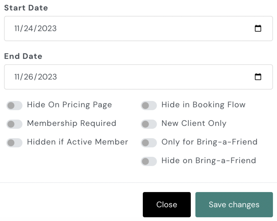 This feature is perfect for promotions, seasonal sales, or limited-time offers. Your pricing will automatically display and be removed from the app based on the schedule you set.